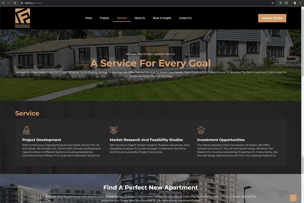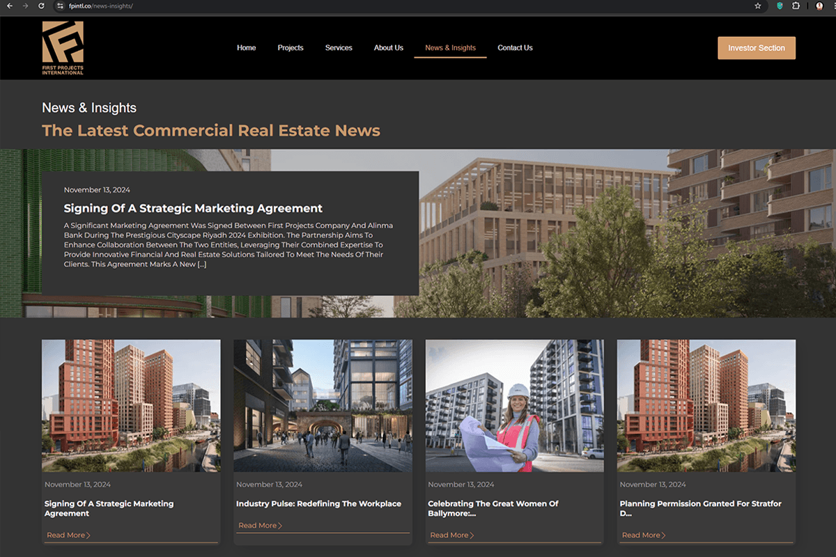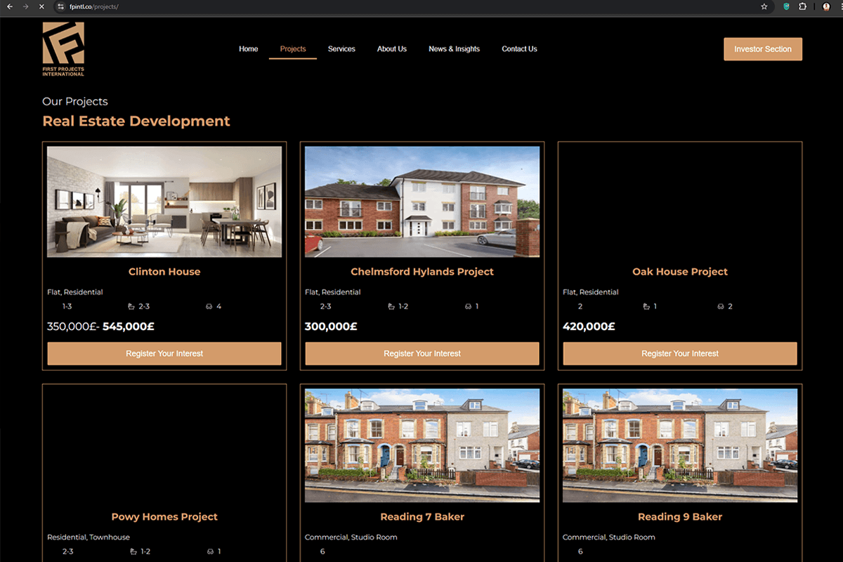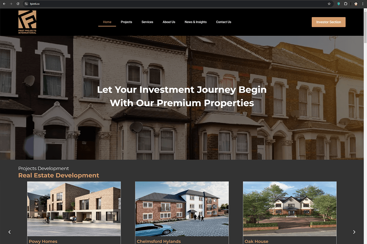 At BE Group, we developed a modern, high-performance platform for First Projects International to better showcase their premium real estate developments and boost investor engagement, addressing the limitations of their previous website in flexibility, speed, and lead capture.